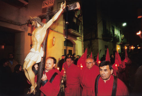 השעה היתה אחת אחר חצות. הטמפרטורה – שתי מעלות מתחת לאפס. ברחוב ימי ביניימי צר, תחת תאורת רחוב דרמטית, חלפה על פנינו בצעדים איטיים ובקצב אחיד פלוגה של חיילים רומאים. לא הרחק ממנה הבחנו בקבוצה של ילדים, לבושים בבגדי מלאכים לבנים, ובחבורה של מבוגרים, לבושים כבני העם העברי. אבל דבר לא הכין אותנו למראה הבא: קבוצה של חמישה רקדנים, מחופשים לשלדים מוארים, חלפה על פנינו בצעדי דילוג קלילים, בלי להוציא מלה.