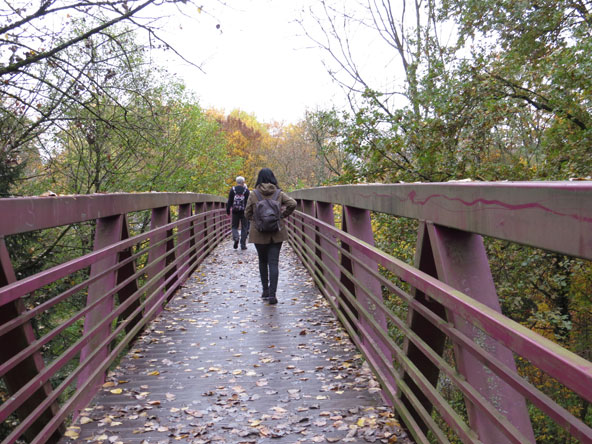 בדרך עוברים על גדת אגם קטן ובחלקים מהשביל אפשר לגלות פסלים סביבתיים יוצאי דופן של האמן ריימונד מריה הרצוג, שיצירותיו משתלבות להפליא ואף נטמעות בין עצי היער, עד שלא ברור מה כאן יציר הטבע ומה יציר האדם. לא חייבים ללכת את כל אורך השביל, אפשר לבחור, כמו שאנחנו עשינו, במסלול מעגלי בן כשמונה קילומטרים. כולל עצירות להתפעל מהשלכת וקפיצה קטנה לכפר צרפתי מהצד השני של הנהר הקדשנו כשלוש שעות ליער, חוויה קסומה באמת.
