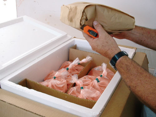 הגלמים נאטמים בשקיות ניילון, מונחים בצידניות מקוררות ונשלחים לישראל במטוס תובלה בו הם מוחזקים בהיפוקסיה, מחסור בחמצן, כדי לעצור את התפתחותם |