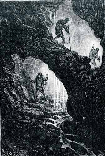 איור מספרו של ורן "מסע אל בטן האדמה". בניגוד לאופטימיות של ורן, אבותיו האחרים של המדע הבדיוני – כמו ה.ג'. וולס, ג'ורג' אורוול ואלדוס האקסלי – פרשו בפני קוראיהם נבואות בלתי נעימות בעליל צילום: אימג'בנק ישראל |