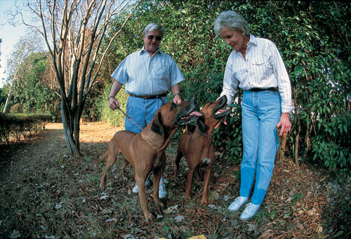 בני הזוג וואלאס עם כלבי הרודיזיאן רידג'בק שלהם. הם חיים בביתם המפואר כמו בתוך כלוב ומתקשים להסתגל למציאות החדשה |