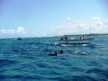 | "אם תרצו, תוכלו לרקוד עם דולפינים", כך אמר לנו קסידי, איש תיירות זנזיברי, שניסה לעניין אותנו – וכמובן להרוויח כמה אלפי שילינגים (לא להתרגש, מדובר בכמה עשרות דולרים) אם הצעתו תתקבל. הד"ר האירי ואני החלפנו מבטים מלאי עניין וסיכמנו כי "הולכים על זה". כך החל החלום הרטוב שלי – לשחות, ללוות, לרקוד, לשמוע, לחוש דולפינים – לקרום עור וגידים. השם דולפין נגזר מהמלה היוונית הקדומה דלפיס, שמשמעותה "עם רחם", כלומר דג עם רחם, או במילים אחרות, יונק. הדולפינים חיים בלהקות ונחשבים לבעלי חיים אינטליגנטים, הם משמיעים קולות יבבה בבואם לחזר אחר הנקבות, נוקשים בלסתותיהם להזהיר מסכנה, וכדי לנווט את דרכם בים הם משמיעים קולות קליק, שההד החוזר מתריע על מכשול. ראשיד בא לאסוף אותנו עם בוקר אל החוף המזרחי של האי, נסיעה של כחצי שעה. לאחר התמקחות עם משיט הסירה עלינו ושטנו כרבע שעה במים בצבע כחול-טורקיז עד שאיתרנו להקת דולפינים. אני מחכה לסימן ממשיט הסירה, וזה לא מאחר להגיע. אני נופל למימי האוקיינוס ההודי באופן מסורבל משהו, על רגליי סנפירים ולעיניי משקפת וצינור אויר – שנורקל בלעז. מיד עם כניסתי למים הקרים הצלחתי לבלוע כמות לא מבוטלת של מי ים, התאוששתי והבטתי למעמקים. למטה ראיתי להקה גדולה של דולפינים כהים, יכולתי להבחין בכמה גורים הצמודים לאימותיהם.