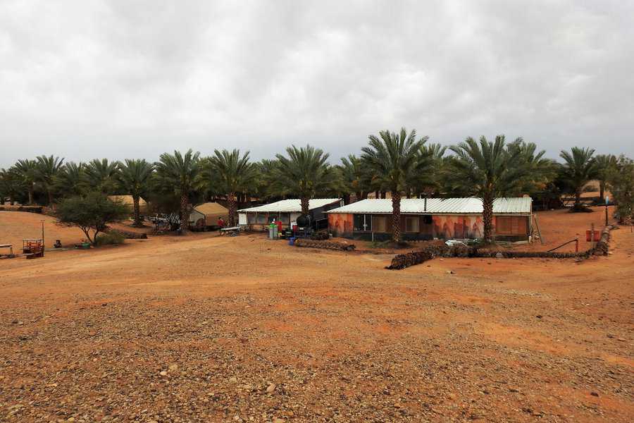 כמה דקות אחר כך ואנחנו מגיעים אל החאן של איציק מעוז המוכתם בירוק של קבוצת עצי הדקל, ומונח יפה בתוואי השטח והצמחייה המדברית. תקראו את המילים הבאות בזהירות מאחר והן אינן אובייקטיביות. איציק הוא חבר ומכר וותיק. היינו פעם יחד באותם גרעיני נחל של בני המושבים שבנו ויישבו את המקום בתקופה המודרנית.