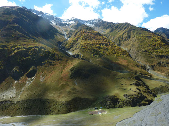 אחד הדברים המקסימים כאן היא העובדה שהאזור לא נפגע כלל מפיתוח תעשייתי. זהו אחד האזורים השמורים ביותר מבחינה אקולוגית בגאורגיה והטוהר הזה אחראי גם הוא לתענוג שבהליכה. "טושטי היא מעין אמבטיה מוקפת בהרים", מספר הוד שטרלינג, שטייל ברגל לאורכו ורוחבו של האזור ומכיר היטב את שביליו (התמונות המעטרות את הכתבה הן פרי מצלמתו). "בקיץ מלווים את הטיול צ'ופרים משמחים במיוחד: פריחות משגעות של פרחים אנדמיים, אוכמניות, ענבים ודבש". הוא מספר על כפרים קטנים, חלקם נטושים, באחרים גרים אנשים בודדים, שבהם אפשר לראות היטב את הבנייה המסורתית ואת מגדלי השמירה המרשימים בני 600 שנה ויותר, שחלקם שומרו ושופצו.
