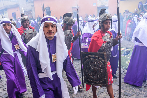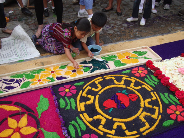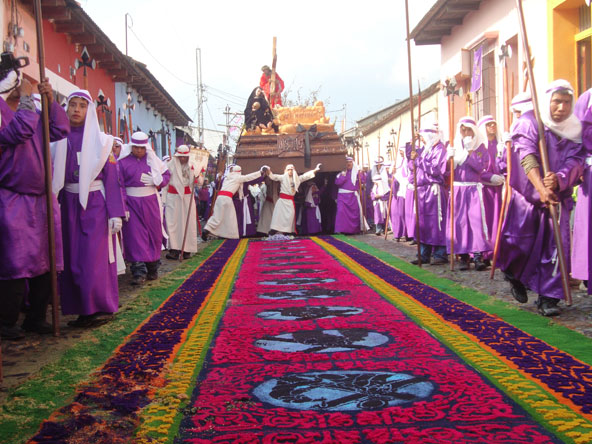 במדינות קתוליות שלהן מורשת ספרדית נוהגים לציין את השבוע הקדוש ברוב פאר והדר, עם תהלוכות חגיגיות שנקראות פרוססיון (Procesión). החגיגות שנערכות באנטיגואה, עיר קולוניאלית שנכבשה על ידי הספרדים במאה ה-16, נחשבות ליפות ולמרתקות מכולן. אחת הסיבות לייחודן של החגיגות בגואטמלה היא שלצד אלמנטים נוצריים מובהקים יש בהם גם אלמנטים מהתרבות הילידית המקומית – תרבות המאיה.