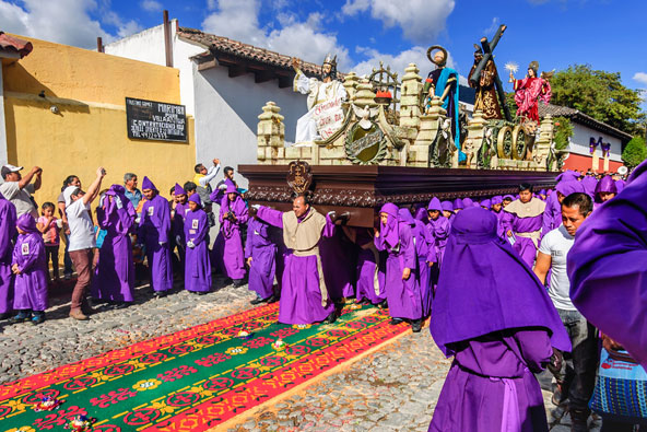 מדינות אמריקה הלטינית מפורסמות בחגיגות שלהן ורבות הפכו לאטרקציה של ממש. אלא שעם השנים, הרבה מהחגיגות הללו איבדו משהו מהאותנטיות שלהן והפכו חגיגה לתיירים. אבל זה בהחלט לא קרה באנטיגואה. באנטיגואה (Antigua), אחת הערים העתיקות והיפות בגואטמלה, חוגגים מדי שנה את השבוע הקדוש, השבוע שלפני חג הפסחא, בתהלוכות ואירועים דתיים, שנותרו אותנטיים לחלוטין ולא ממוסחרים. במשך חודשים ארוכים נרתמים כל תושבי העיר להכנות לתהלוכות שיעברו ברחובות הצרים, על גבי שטיחי פרחים מרהיבים שהוכנו בעבודת יד. הוסיפו לכך את המראה של שלושה הרי געש חרוטיים המקיפים את העיר, שאחד מהם, פואגו (Fuego) הוא הר געש פעיל, את הרחובות המרוצפים באבן, את הכיכרות היפות ואת הבתים הקולוניאליים שבנויים סביב חצרות פנימיות, ותבינו משהו מסוד הקסם של החגיגות האלה.