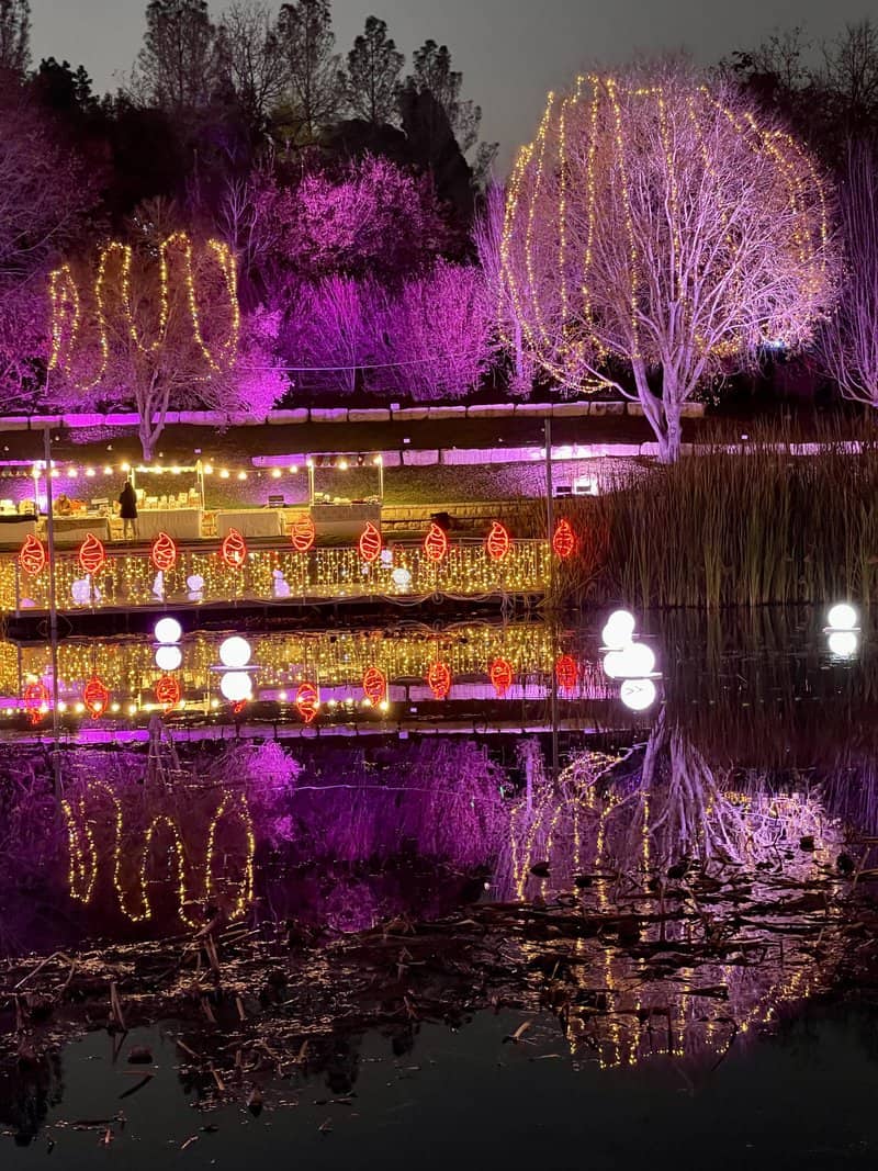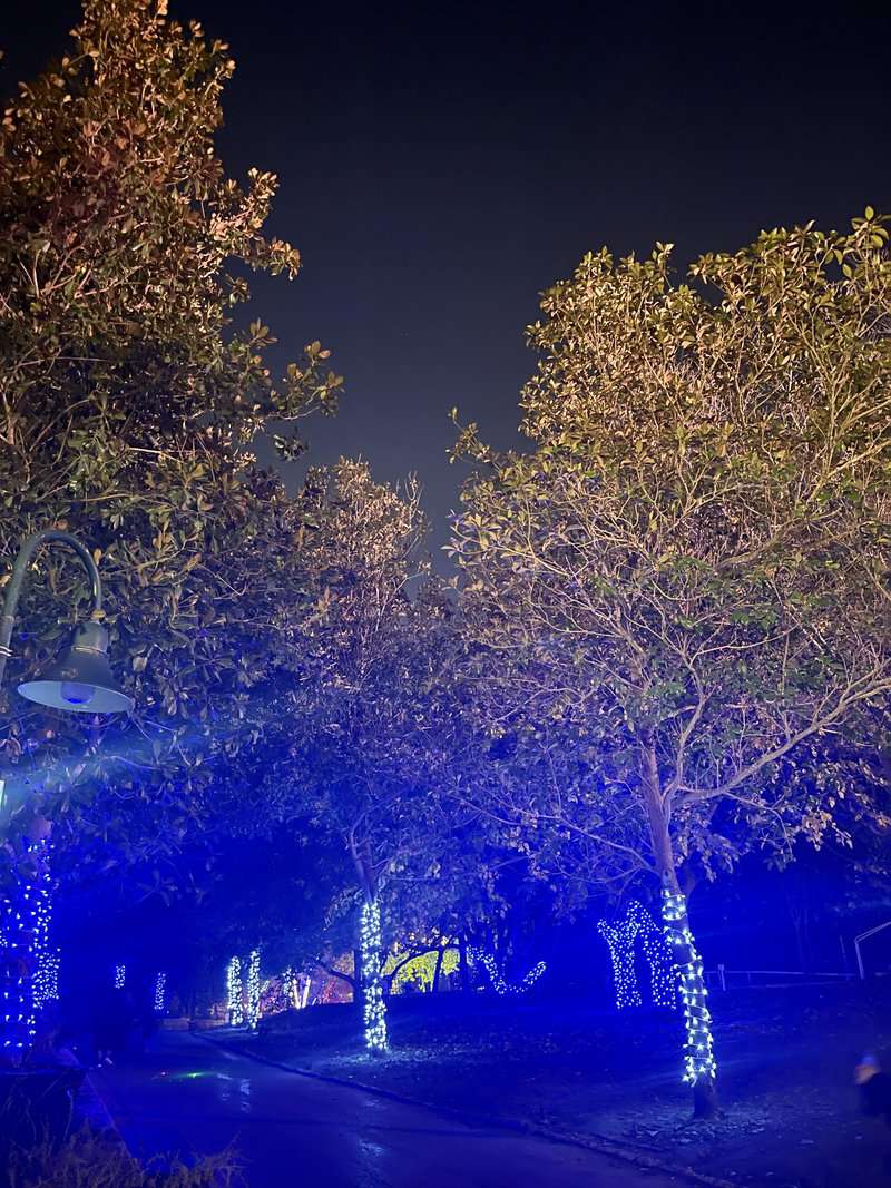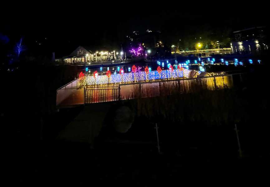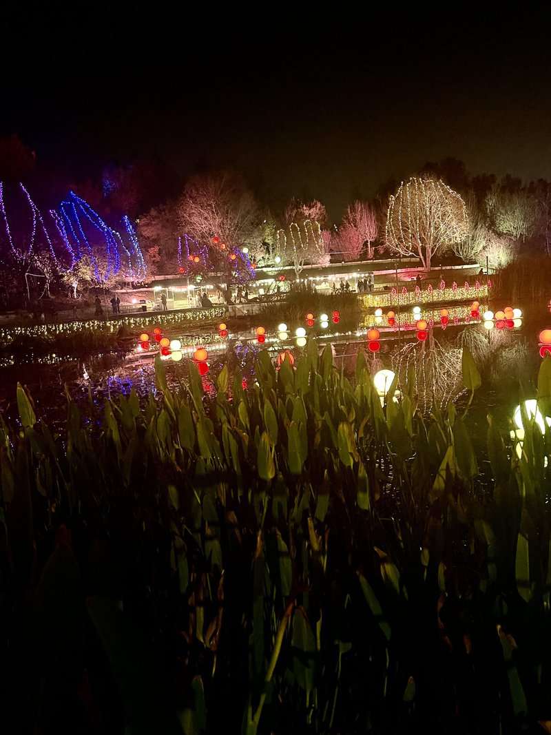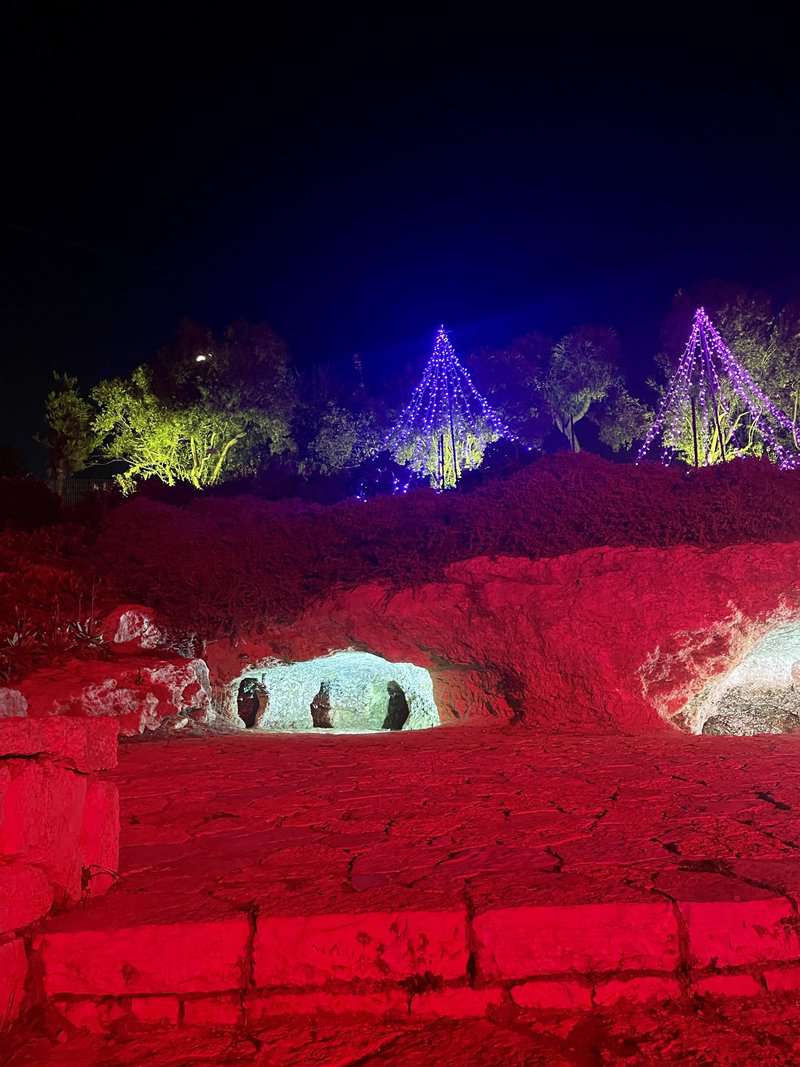 בין הצמחים נתלו שרשראות של אורות קטנים, דמויות של איילים, פרחים, פרפרים ואלמנטים מוארים, חלקם מנצנצים וחלקם עומדים, מעוצבים ברוח החג. להבות מוארות מרצדות ליד האגם וסככה שכולה מוארת בנוריות צהובות משמשת כבית קפה קטן. ברחבי המסלול ישנן גם עמדות צילום מוארות שישמשו את הקהל.