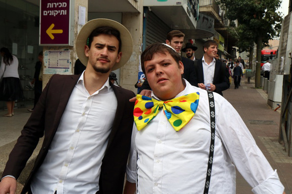 כשהיינו ילדים תחפושת של ליצן היתה פופולרית. גם כיום בבני ברק אפשר לראות לא מעט ליצנים | צילומים בכתבה: גילי חסקין