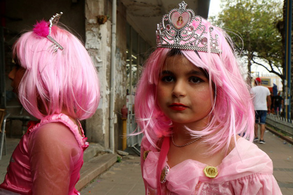 חג פורים מעניק לעיר המתבדלת מראה מחויך יותר. מידי שנה, עשרות אלפי חרדים חוגגים את יום הפורים כמשתה ויום טוב בטבורה של בני ברק. גם מבוגרים מתחפשים, לרוב בתחפושות סמליות – מאזניים של חתול ועד משקפי שמש מצחיקים. הילדים, שבגדיהם הצבעוניים בולטים בסתירה לאפרוריות של השכונה, גודשים את הרחוב. הקטנים אוחזים בחוזקה בידי הוריהם. הפאות לעתים מוסתרות מאחורי האוזניים ולעתים מתנדנדות מתחת למגבעת הבוקר או ראשו עטור הנוצות של האינדיאני. הם מתחפשים לדמויות מהאגדות ולתחפושות יצירתיות יותר, כמו קופות צדקה או ספר תורה. ילדות בלבוש ורוד ואוזני ארנב ארוכות חוצות את הכביש. זוג אחיות מתקשטות כל אחת בחצי לב, שמתחברים יחד ללב אחד ובו כתוב "ואהבת לרעתך כמוך", ואני תוהה אם לא ראו את השלטים נוטפי השנאה לכל מה שהוא אחר.