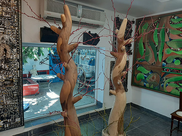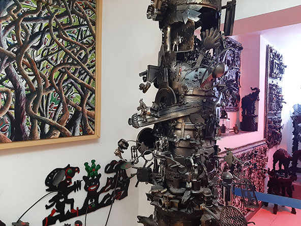 התחנה הבאה בסיור האמנות היא מוזיאון הבית של אמיר אלקיים. נהוג לומר שתמונה אחת שווה אלף מילים, אם כך כמה שוות מאות תמונות ויצירות נוספות המכסות כל פינה בביתו של אלקיים? כרכים שלמים לא יספיקו כדי לתאר את המורכבות והצבעוניות של העבודות שיוצאות תחת ידיו של אלקיים, אמן רב-תחומי ששימש ומשמש מורה לאלפי תלמידים ויוצרים מקומיים (בהם גם נבו אפק). אלקיים, שנולד בקזבלנקה ועלה לישראל בגפו בגיל 17, לא רק מצייר על נייר וקנבס, תחת ידיו המוכשרות חפצים יומיומיים מקבלים פרשנות ייחודית והופכים ליצירות מפתיעות ויוצאות דופן.