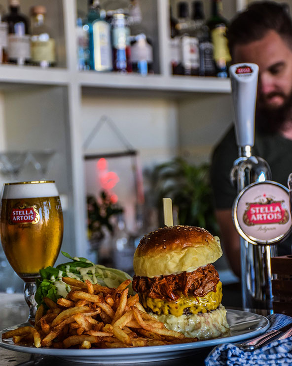 המבורגר, צ'יפס ובירה (או אפרול שפריץ אם אתם פחות בעניין של בירה). השילוב המושלם ליום קיץ אילתי | צילום עליון: ליאור רפאל; צילום תחתון: רותם בר כהן