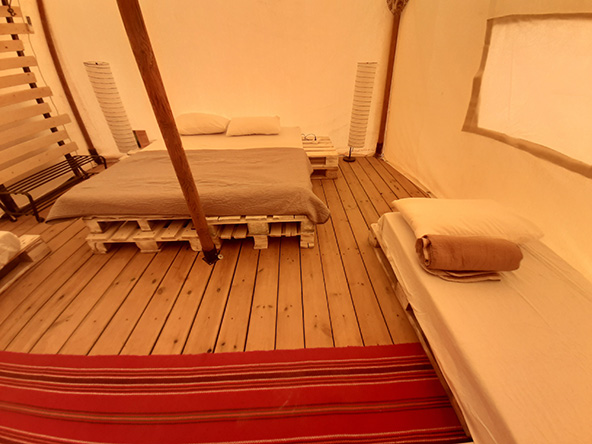 מדבריא. אוהל לשמונה (למעלה), אוהל לארבעה (באמצע) וערסל לצד האוהל למנוחה מושלמת