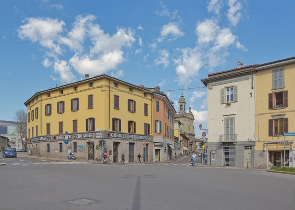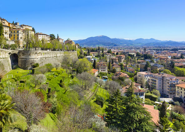 העיר העליונה של ברגמו נמצאת על גבעה ירוקה המשקיפה על העיר התחתונה
