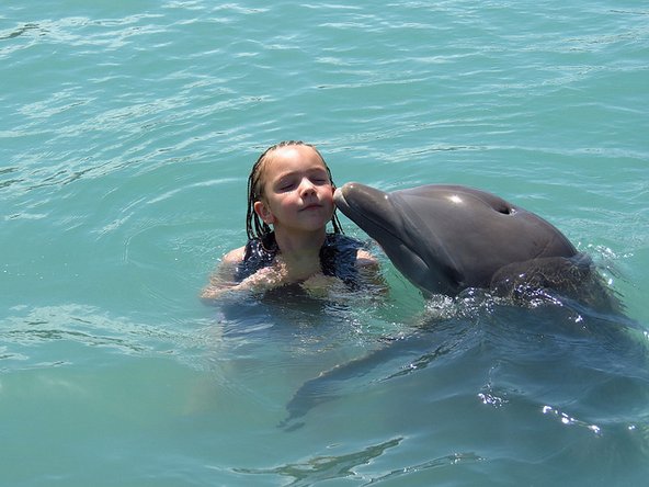 7. שחייה עם דולפינים אטרקציה פופולרית בעיקר בקרב משפחות היא מפרץ הדולפינים (Dolphins Cove), שלו מוקדים בערי התיירות הבולטות בג'מייקה: אוצ'ו ריוס, מונטגו ביי ובקרבת נגריל. במתחם, המעוצב בסגנון טרופי, ניתן לשחות עם דולפינים וליצור קשר אינטימי עם היצורים הנבונים הללו. אפשר לצפות כאן בהאכלה של כרישים, לשוט בסירת זכוכית, להתיידד עם תוכים ועוד. אתר  נשיקה מדולפין במפרץ הדולפינים | צילום: kartfamily, flickr