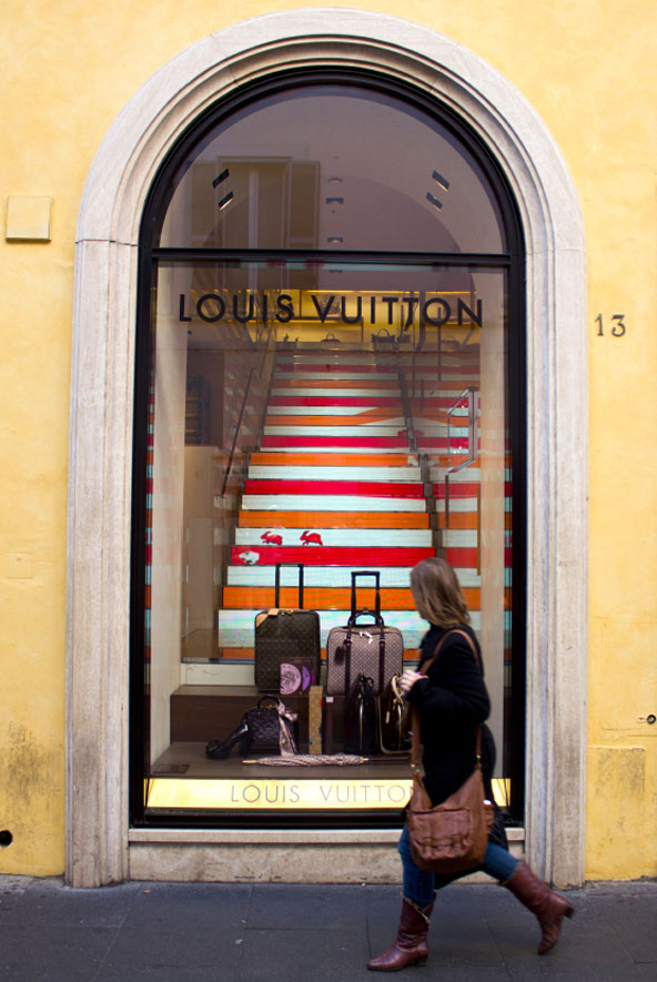 מכאן הדרך לכיכר ונציה פשוטה וברורה מאליה, שכן אי אפשר לטעות באנדרטה המוגזמת לכבודו של ויטוריו עמנואל שניצבת במרכזה. אם שרירי הרגליים עומדים בטיפוס, תוכלו לעלות בהמון מדרגות לראש האנדרטה ולהשקיף על עיר הנצח, שהכינוי הזה ברור כאן יותר מתמיד. מכיכר ונציה ממשיכים לויה קורסו (Via del Corso), ומתחברים לצד נוסף של רומא – שופינג. לאורך הרחוב הרחב יש אינספור חנויות, חלקן של מותגים מפורסמים. מבנטון ועד זארה, כל מה שחפצתם לעצמכם ולבני המשפחה שנותרו בבית תוכלו למצוא כאן.  ויה קונדוטי. כל המי ומי בעולם מעצבי העל | צילום: אייסטוק ההחלטה כמה זמן להקדיש לקורסו תלויה בכם. מי ששופינג עבורו הוא חלק בלתי נפרד מההנאה בטיול, יכול לבלות כאן שעות. אחרים יכולים פשוט ללכת בזריזות עד ויה קונדוטי (Via Condotti) ובו לפנות ימינה. כאן השופינג מקבל תפנית חדשה ויוקרתית להפליא: חנויות של מיטב המעצבים האיטלקים והבינלאומיים, היכלות מוקפדים של אופנה. מי לא נמצא כאן? פראדה וגוצ'י, לואי ויטון וג'ימי צ'ו, מקס מארה והרמס, וזאת רק ההתחלה. הרחוב הצר מוביל היישר לעוד נקודת ציון תיירותית מפורסמת: המדרגות הספרדיות. במקום הזה אפשר לסיים את הטיול ולחזור במטרו (התחנה נמצאת בסמוך למדרגות) לנקודת המוצא. מאידך, אם אתם רוצים לחתום את הטיול בפסטה נפלאה ובגלידה שנחשבת לטובה ברומא, הליכה של כעשר דקות תיקח אתכם לפיאצה דל קופלה (Piazza delle Coppelle) ולמסעדת Maccheroni המצוינת (כתובת: Piazza delle Coppelle 44, אתר אינטרנט).