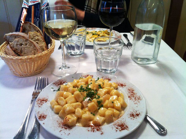 ניוקי ברוטב גורגונזולה ואגסים במסעדת Maccheroni. החיפוש אחר הפסטה המושלמת הסתיים כאן