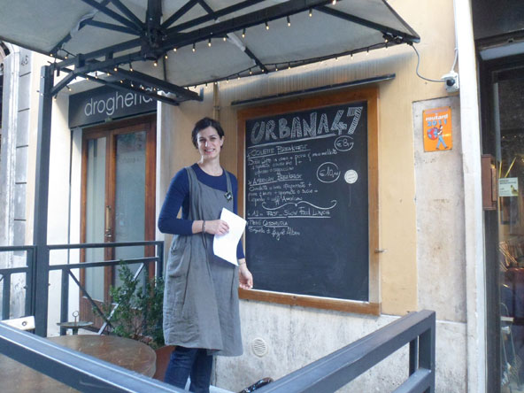אם אתם רעבים, מומלץ לחזור לרחוב אורבנה, במספר 47 תמצאו מסעדה בעלת אותו שם: Urbana 47. מקום מקסים שמגיש אך ורק אוכל אורגני מקומי ("במרחק אפס קילומטרים מרומא", הסבירה המלצרית החביבה), שמבושל לאט ובשיטות מסורתיות. תפריטי הצהריים זולים (8, 10 ו-12 אירו) וכוללים מנה עיקרית לא גדולה, מים מינרלים וקפה. עסקה לגמרי לא רעה, והטעמים משובחים. פטוצ'יני בעבודת יד לא הזכיר בדבר את האיטריות הארוכות והחלקות שמקבלים בארץ – הפסטה היתה קצרה למדי עם פני שטח גבשושיים שתופסים טוב יותר את הרוטב (קרם של ברוקולי במקרה שלי. נהדר). אם הבטן עדיין לא מקרקרת, כדאי להתאפק עד סוף המסלול למסעדה טרנדית ונהדרת. אבל על כך בהמשך.  התפריט היומי המתחלף במסעדת אורבנה 47. אוכל אורגני ומקומי מאוד ("אפס קילומטרים מרומא")