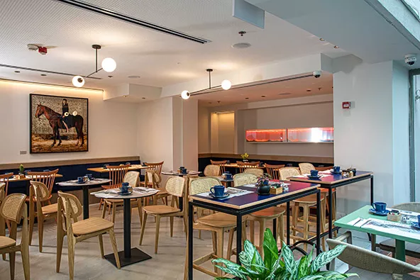ארוחת הבוקר במלון מוגשת בחדר מקסים, שחציו הוא חדר שמש עם גג מזכוכית, וכוללת מזנון מגוון של סלטים, ממרחים, ביצים, מאפים מתוקים ומלוחים, לחמים ושתייה קלה וחמה. גם כאן האווירה אינטימית ושלווה, הכי רחוק מחדרי האוכל ההמוניים של המלונות הגדולים, והאוכל טעים מאוד.