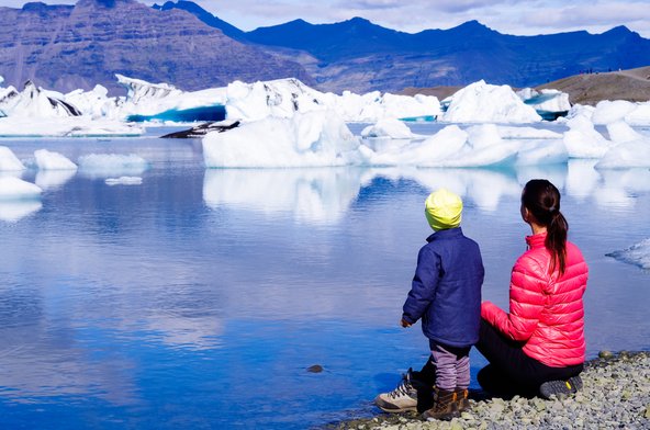 לגונת הקרחונים יוקולסרלון באיסלנד. גם הילדים יתקשו להישאר אדישים מול הנוף הדרמטי