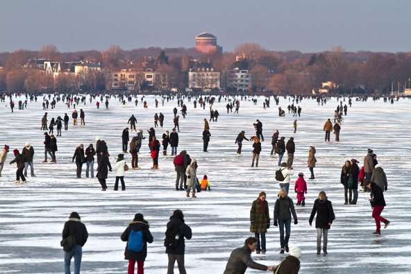 ואם אתם מעדיפים דווקא החלקה על הקרח, תמצאו ברחבי גרמניה המון זירות החלקה מקורות ופתוחות, חלקן ברגמים שקפאו. מבין זירות ההחלקה הרבות ראוי לציין את Munich Ice Magic שפועל בכל שנה מסוף נובמבר ועד סוף ינואר, INDOO Eisarena, זירת ההחלקה הגדולה ביותר בגרמניה, בשטח של 4,300 מ"ר שפועלת בעיר המבורג, זירת ההחלקה הרומנטית סביב מזרקת נפטון באלכסנדרפלאץ בברלין וזירת ההחלקה שבחזית טירת היידלברג.  החלקה על הקרח באגם קפוא בהמבורג | צילום: Deutsche Zentrale für Tourismus, Ralf Brunner