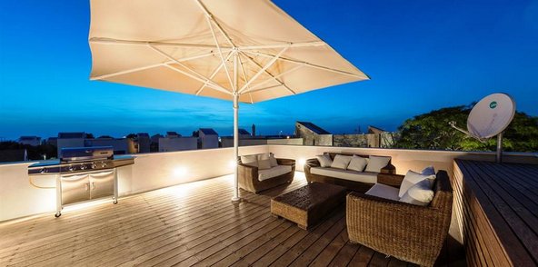 הווילה משתרעת של שתי קומות, והיא כוללת סלון מרווח, מטבח מצויד היטב, פינת אוכל, חדרי רחצה, מרפסת דק גדולה וגג עם שמשיות ופינות שיזוף שאפשר להתרווח בהן עם כוס משקה מול הים. בחצר הגדולה והמטופחת תמצאו עוד מקומות נעימים לשבת ולהשקיף על הים.