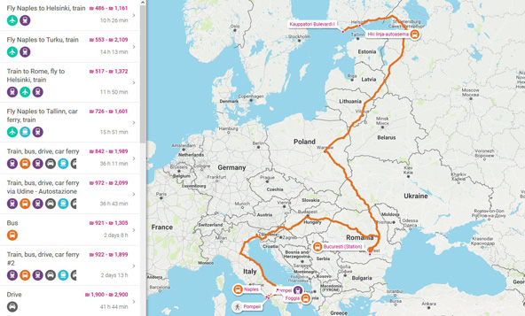 אתר Rome2Rio מאפשר לכם לתכנן את מסלול הטיול הבא שלכם במגוון כלי תחבורה – מטוס, מכונית, אוטובוס, רכבת ואפילו מעבורת. את כל אלה הוא יכניס לשקלול, בהתאם למחיר שתבחרו, עד שתמצאו את המסלול המתאים לכם ביותר.