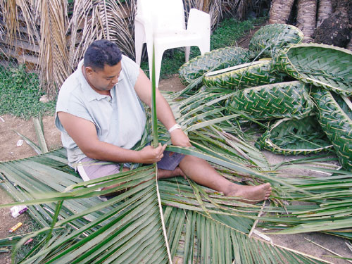 | טונגאי קולע סלי נשיאה מחצאים של עלי קוקוס |