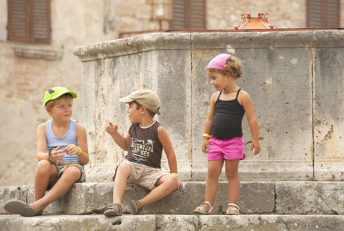 סיינה היא עיר ידידותית למדי לילדים, שישמחו להתרוצץ ולהאכיל יונים בפיאצה דל קמפו, ולטפס לראש מגדל הפעמונים טורה דל מנג'ה שמתנשא מעל הכיכר ומציע תצפית נהדרת על האזור. עם ילדים אסור להחמיץ גם את פיזה, שם הילדים ייהנו לטפס לראשו של המגדל הנטוי (מגיל 8 ומעלה), ללכת בין חומות העיר העתיקה ולשוט בסירה בנהר הארנו.