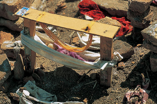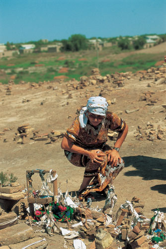 אלפי אבנים קטנות מונחות על פניה השטוחים של גבעת האקדמיה האבודה. נשים עומדות שם, רוכנות ומניחות אותן, סובבות במעגל את המנדלות הגדולות המונחות שם, עשויות כולן מאבנים קטנות. בין האבנים מונחים מאות סרטי בד קטנים, שצבעיהם דהו. אלבינה מתבוננת בתשומת לב בנשים הסובבות כבר בפעם השלישית סביב האבנים. "הן מבקשות כך על פרי בטן", היא אומרת. "כל מי שיש לה בעיה עם משימתה העיקרית של האשה הטורקמנית מגיעה לכאן". אלבינה לא מחייכת כשהיא מספרת את זה, ובאותו טון מתוח היא אומרת שמדי פעם היא שואלת את הנשים הסובבות כאן אם הן ביקרו גם אצל רופא נשים. "ומה התשובה המקובלת?", אני שואל. אלבינה מצביעה על האבנים ואומרת לי, "תתכופף וגם תרכיב את המשקפיים שלך". צורותיהם של הסרטים ושל הסמרטוטים התבהרו מיד. אלו הן עריסות קטנות ובובות דמויות תינוקות שמונחות בתוכן. "זו התשובה שלהן", היא אומרת. "לקדושתה של פינה קטנה אחת במקום הזה יש יותר כוח מאשר לעשר מרפאות נשים על כל צוותיהן הרפואיים". "ואם החוגה סביב עיגולי האבן והעריסות הקטנות לא עוזרת בכל זאת – פעם, פעמיים ושלוש?", אני שואל. אלבינה משלבת זרועה בזרועי ואומרת, "אם תהיה שקט, אראה לך משהו".