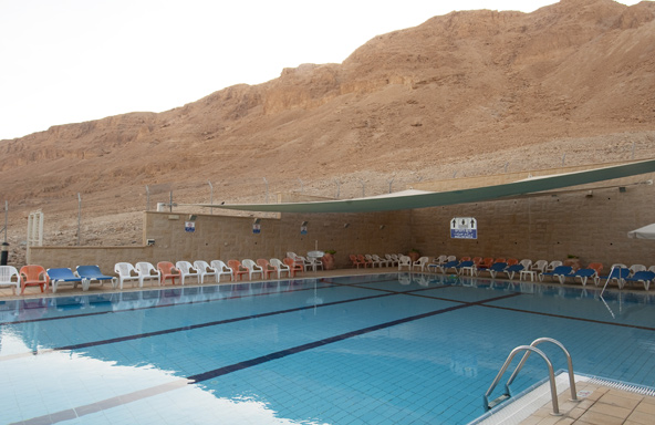 הבריכה באכסניה במצדה. מקום מושלם להתקרר מהחום המדברי