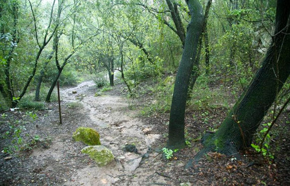 שביל הליכה בחורש הטבעי מוביל לשרידים של חורבת דנעילה