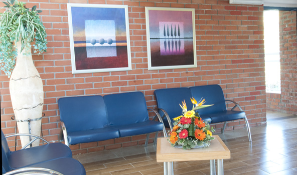 פינת ישיבה נעימה ומוארת באכסניית אנ"א שלומי