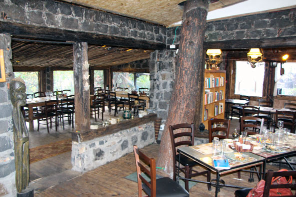 במתחם החווה יש מסעדה יפיפייה הבנויה מאבן בזלת ועץ, שבה ניתן ליהנות מטעימות יין וגבינות צאן מובחרות, מגוון מטעמים תוצרת בית, וכמובן כל התוצרים שהפקתם בעצמכם במהלך הביקור. בתוך המסעדה משתרגים עצים עתיקים הממשיכים לצמוח מבעד לפתחים שנפערו בגג כדי לא לגדוע אף עץ בתהליך הבניה, הדלת בנויה משאריות של חביות ישנות ואפילו הנתזים מתהליך הפיסול משמשים כאן לריצוף. "הכול כאן ממוחזר, חוץ מהאוכל", אומרת תמי, ואני נשבית מיד בקסמה ובקסם המקום הזה אשר מעבר לחוויה, ליצירה ולהנאה טומן בחובו ערך מוסף של למידה חווייתית, ערכים, אהבת האדם והחי והרבה נשמה. אין ספק שהחווה הזו – כמו גם בני הזוג שמאחוריה – היא פנינה של ממש ששווה מאוד להכיר. מומלץ בחום. איך מגיעים: מיד לאחר הכניסה למושבה קדמת צבי פונים שמאלה וממשיכים על פי השילוט. בתאום מראש, טלפון: 052-8805026, אתר אינטרנט.
