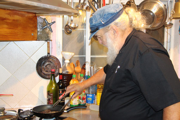 לא הרחק מכאן, במושב שעל, תוכלו להתארח אצל צ'בי, בשלן מקומי נוסף הפותח את ביתו בפני אורחיו לחוויה קולינרית מיוחדת עם ניחוחות של מחוזות רחוקים. מעל האש המבוערת בתנור הבוץ, תחת עץ האגוז שבחצר, מתבשלים בבישול איטי, במשך יותר מעשר שעות, תבשילי קדירה קפריסאים. בינתיים נשלף מהתנור לחם שזה עתה נאפה ולאחר שמשיקים עם המארח כוסית זיווניה מסורתית, על השולחן מתחילים להופיע שלל סלטים ומאזטים: קישוא מטוגן בבלילה ובלימון, סלט עם גבינת פטה, פלפלים קלויים עם בצל ולימון, חציל קלוי על האש, צזיקי, גבינת חלומי מטוגנת, והרשימה עוד הולכת ומתמשכת. הרעיון הוא לטעום מעט מכל מנה. כשהכל טעים כל כך, זה לא פשוט. צ'בי מפציר להשאיר מקום, והוא יודע מה הוא אומר. מצעד בלתי נגמר של מנות עדיין בדרך: פטריות אפויות ביין פורט, עלי גפן ממולאים באורז, עם צנוברים ומעט קינמון ועוד ועוד, ועדיין לא הגענו לעיקריות. העסק הולך ונעשה קשה מרגע לרגע. לכוסות נמזג מיץ תפוחים צלול מהמטע שבחצר. לפני הכול הוא חקלאי, המטפח את מטעיו ואת כרם ענבי היין שלו. הבישול והאירוח זו אהבה. בחורף אפשר להתכרבל בשמיכות נעימות בפינות הזולה שבחצר לצד המדורה או לצד השולחן שבסלון. כמו בטברנות הקטנות, גם הוא מסב עם אורחיו לשולחן, משוחח, משתף בסיפוריו המרתקים, ואגב כך משגיח שלא תפסחו חלילה על שום מנה. עוד יין נמזג לכוסות ומצעד המנות נמשך עם פילאף קפריסאי בסגנון ההרים, כופתאות מבשר טלה ועגל, עופיון בלימון, סופלקי מבשר טלה וזו רק רשימה חלקית. הכל טעים כל כך.