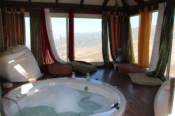 אחד המקומות הרומנטיים ביותר להשקיף על המראה הזה מבלי לטרוח באף צעד מיותר בצינת הבוקר, הוא מחיק בקתת הג'קוזי של הטירות הנעות ברוח, המוקפת חלונות ענק הפעורים לנופי החרמון ורכסי ההרים, בעודכם שקועים עד צוואר בחומם של המים המבעבעים בקצף ריחני עם בן זוג אהוב לאור הנרות המרצדים סביב. מיקומן של הבקתות היפהפיות במרומי הישוב הגבוה ביותר בארץ, נמרוד, על פסגת הר קטע, מספק תפאורה מושלגת בחורף ובריזה נעימה גם בחום היוקד של הקיץ, ובתוכן ממתין כול פינוק אפשרי, החל מקמין לחימום האווירה, ריהוט מסוגנן, מטבחון המאובזר בכל טוב וארוחת בוקר משובחת במיוחד, וכלה במיטת אפיריון מפנקת, השקועה בתוך במת עץ עם הרבה מקום לאהבה וכול יופיו של הגולן מול העיניים.