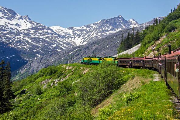 הרכבת הקיטור ההיסטורית המקשרת בין עיר כורי הזהב סקגווי (Skagway) לבין מעבר ההרים וויט פאס (White Pass) באלסקה הוקמה ב-1898, בתקופת הבהלה לזהב. הרכבת עוברת בנתיב של מחפשי הזהב, והנסיעה מסתיימת על גבול אלסקה-קנדה. המסילה עצמה נחשבת לפלא הנדסי: הרכבת מטפסת לגובה של למעלה מ-900 מטר בדרך תלולה ומפותלת, שעוברת בין קרחונים, אגמים הרריים, ערוצי נחלים ומפלים, שעל כולם אפשר להשקיף מחלונות הרכבת הגדולים. אם אתם מבקרים באלסקה במסגרת קרוז, תשמחו לגלות שזהו אחד מטיולי היום הפופולריים ביותר בסקגווי.