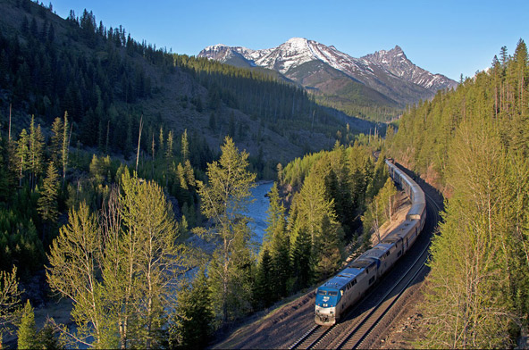 ה-Empire Builder עוברת דרך נופיו המרהיבים של פארק גליישר | צילום: Justin Franz / Amtrak