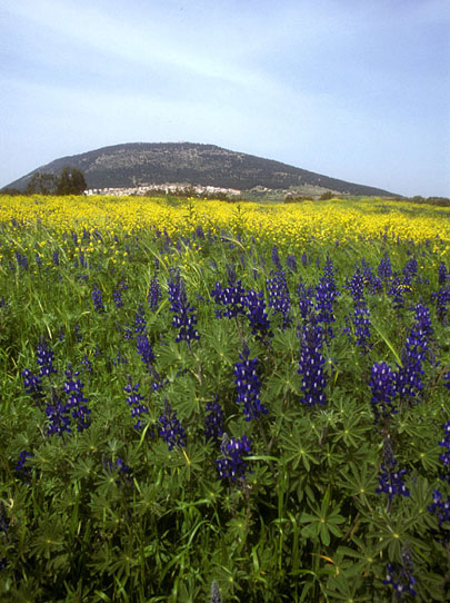 השביל המסומן מוביל אותנו ממרכז המבקרים בין צמחי המים, אל שביל עץ צף. מכאן נוכל לצפות ללא הפרעה לעבר אלפי ברווזים, שקנאים ושאר העופות שהגיעו אלינו בנדידת הסתיו. מכאן נמשיך אל מגדל התצפית, ממנו נראה את שלל בתי הגידול בשמורה, ואם יתמזל מזלנו נצליח לחזות בעופות דורסים בתמרוני צייד ומעוף מעל השטח סביב. המסלול חוזר אל מרכז המבקרים, בו כדאי לבקר בתצוגת פוחלצים מרשימה. 8. תורמוס ההרים בנחל תבור לכל המשפחה, כחמש שעות הליכה נוחה וקלה מתי? בין פברואר לאפריל, בעיקר מרץ נחל תבור באביב הוא אחד מהנחלים היפים בגליל התחתון. המים זורמים בערוץ הבזלתי ויוצרים בריכות ומפלים קטנים. המדרונות ירוקים ומכוסים בשלל פרחים. מרבדים כחולים של תורמוס ההרים מעניקים כתמי צבע מדהימים ביופיים. מי שאינו מעוניין במסלול הליכה ממשי, יכול לחזות במרבדי התורמוסים ליד הכביש. ניסע בכביש מעפולה לצומת גולני, ליד הכניסה לכפר דבוריה נרד אל הנחל, אל קבוצת עצי אקליפטוס גדולים. ליד העצים נמצאת נביעת מים קטנה ותל ארכיאולוגי – תל קשיון, שמורדותיו מכוסים בתורמוס ההרים. למי שאינו חושש מחמש שעות הליכה (נעימה ויפה): נוסעים לקיבוץ גזית, ופונים לפני הכניסה לקבוץ, אל דרך עפר ימינה. מכאן מתחיל מסלול הליכה מסומן היורד לנחל תבור. נלך במסלול מעגלי במעלה הנחל, נגד כיוון הזרימה. נגיע אל הקטע הקניוני של נחל תבור ונמשיך ממנו עד תל רכש – תל עתיק ובולט בתוך האפיק. מכאן נעלה חזרה בדרך עפר אל קבוץ גזית. אם נותר בנו כוח, כדאי לא להפסיד את התצפית מהר תבור, שגם הוא ירוק ופורח.  פריחת התורמוס מול הר תבור הר תבור – גובהו של הר תבור רק 588 מטרים, אך הוא בולט ושולט על סביבתו לכל 360 המעלות. על כיפתו העגולה ניצבים מנזר פרנציסקאני וכנסייה יוונית אורתודוכסית. נגיע אל ההר בכביש מספר 65, ממנו נעלה צפונה מצומת תבור לעבר דבוריה. הכביש מטפס אל ראש ההר, אל מגרש החניה של המנזר – שם נשאיר את הרכב. נחזור מעט ברגל אל "שער הרוחות" דרכו חלפנו בדרכנו אל החניה, ונמצא את הסימון הראשון למסלול ההליכה. אורך המסלול כשני ק"מ, הליכה קלה בנוף משגע. השביל מסומן בשחור, מוליך אותנו סביב לפסגה במסלול מעגלי. התצפית משתנה בכל זווית, וביום צח ובהיר נוכל לראות מכאן את כל הצפון.