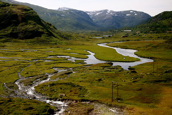 קו ברגן, נורווגיה – מאוסלו לברגןאחד מטיולי הרכבות היפים ביותר באירופה, ויש האומרים בעולם, הוא קו ברגן (The Bergen Line) המחבר בין שתי הערים הגדולות בנורווגיה, אוסלו וברגן. מחלונות הרכבת נשקפים נופים חלומיים של פיורדים, קרחונים, פסגות מושלגות, אגמים, מפלים ויערות. הנסיעה עוברת דרך רמת הרדאנגר, הרמה הגבוהה ביותר באירופה, והיא לא מפסיקה לרגש לרגע, גם בשל הנופים המפעימים וגם בשל ההישג ההנדסי כביר שהיה כרוך בהנחת פסי הרכבת, שעוברים דרך מאות מנהרות וגשרים. ממראות הדרך בין אוסלו לברגן (צולם מחלון הרכבת של קו ברגן)