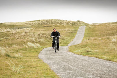 רכיבה בווטרלנד: קרוב לעיר מצפון לאמסטרדם, אך קרוב מאוד לעיר, נמצא אזור הווטרלנד, אזור פסטורלי להפליא של תעלות מים, שדות וכפרי דייגים ציוריים. ניתן לצאת לדיווש קליל ומהנה להפליא של כ-25-20 קילומטר בין כפרי האזור. נקודת המוצא לטיול היא באזור התחנה המרכזית של אמסטרדם. באזור התחנה המרכזית יש חנויות רבות להשכרת אופניים, ובהן גם ניתן להצטייד במפה של אזור הווטרלנד. ממש מאחורי התחנה המרכזית יש מעבורות כחולות קטנות שחוצות את התעלה לכיוון Buiksloterweg. עולים על אחת מהן עם האופניים (השייט בחינם) ויוצאים לדרך. כעבור דקות אחדות מגיעים לצד השני. יורדים מהמעבורת ומתחילים לרכב בשביל אופניים רכב ושטוח, בכיוון Schellingwoude (יש שילוט טוב לאורך הדרך). מהר מאוד שאון העיר מתחלף בנופי הכפר: שדות ירוקים שבהם רועות פרות הולנדיות, תעלות שלוות בהן שטים בנחת ברווזים, חוות מתוקות להפליא וכפרים מקסימים באופק. כדאי לצאת למסלול מעגלי של כ-25 קילומטרים שעובר דרך הכפרים זונדרדרופ (Zunderdorp), רנסדורפ (Ransdorp) ודורגרדם (Durgerdam) עד שהוא חוזר לנקודת המוצא. מי שזמנו בידו והוא בכושר טוב, יכול לצאת לסיור ארוך ומקיף יותר, של כ-75 קילומטרים, שעובר דרך כמה מכפרי הדייגים הציוריים והמפורסמים של האזור, כמו אדם (Edam), מוניקנדם (Monnickendam) ומארקן (Marken). בכל הכפרים האלה אפשר להצטייד בגבינות משובחות, לנוח עם כוס קפה וגם לקנות מזכרות הולנדיות טיפוסיות. כעת, בידיים מלאות ובטן מלאה, אפשר לחזור לעיר הגדולה.  דיווש בדיונות של האי טסל