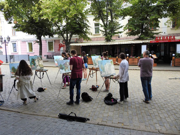 רחוב דריבסובסקיה. קבוצת סטודנטים מציירת