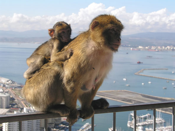 עוד סמל גיברלטרי – קופי מקוק ברברי. בגיברלטר חיים כ-200 קופים שמסתובבים חופשי באזור הצוק