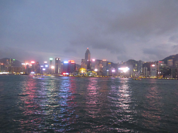 בצדה האחד של כיכר השעון, על סדרת מדרגות ארוכות שיוצרות מעין אמפיתיאטרון הצופה למפרץ, אני מוצאת מקום פנוי בקו ראשון למים. הלחות שליוותה אותי במשך כל השהות בהונג קונג מתפוגגת ברוח הנעימה. השמש הופכת לכדור כתום שיורד לאיטו אל מאחורי גורדי השחקים, משאיר פסים של צבע בשמיים. זאת לא שקיעה דרמטית במיוחד, ודאי לא אחת היפות שראיתי, אבל השילוב של המפרץ הכחול, שחוצות אותו סירות מפרש, ספינות עץ ואניות משא, גורדי השחקים האדירים והשמש השוקעת – כל אלה גורמים לי אושר בלתי יתואר.