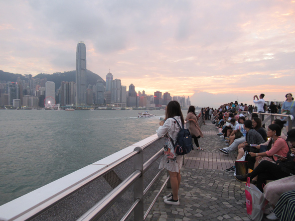 שקיעה הונג קונגית. לקראת ערב רבים מגיעים לרציף בקאולון כדי לצפות בשקיעה