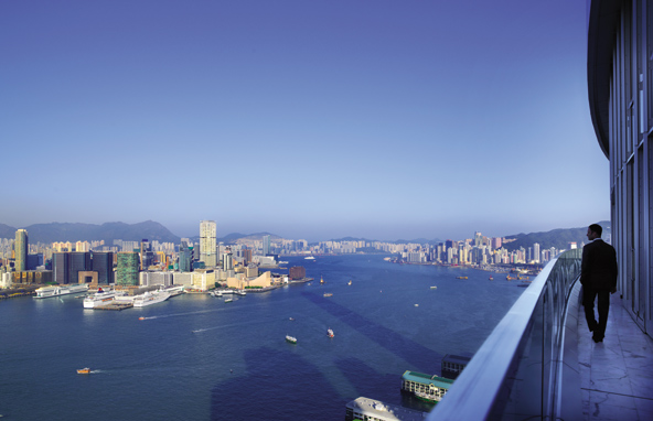ואם הנוף מהחדר לא הספיק, זה הנוף שנשקף ממרפסת לאונג' העסקים בקומה ה-45 במלון ארבע העונות | צילום: Ken Seet, Four Seasons Hong Kong