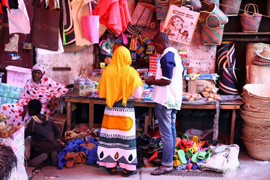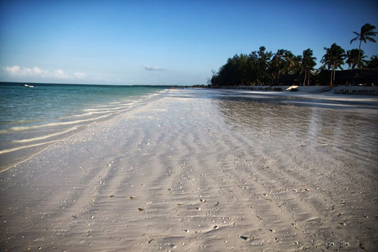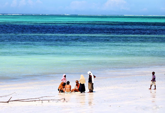 אחד הטיולים היפים בזנזיבר הוא אל שמורת הדולפינים קיזימקאזי (Kizimkazi), לא הרחק משמורת ג'וזני. החוף שונה להפליא מזה של המלון. החול הוא כמובן אותו החול, רך, לבן ונעים למגע. גם הים עשיר בגוונים רבים של כחול, אלא שפוקדים אותו רק מקומיים. בקו המים עוגנות עשרות סירות דייגים רעועות, ומרבית הנוכחים מעבירים את היום בשיחה בטלה. משיט סירה שנקרא מרקו פולו לקח אותי בסירתו וכשהיינו קרוב מאוד אל החוף הוא זיהה בעיניו המיומנות להקה של דולפינים שזינקו מעל המים בזריזות. הפנייתי אליהם במהירות מצלמה, אך הם חתכו את הגל ונעלמו בתוך הקצף. "לשם", כיוון אותי מרקו פולו כשזיהה צלליות במים, וכאשר הדולפינים זינקו החוצה בתנועה חיננית ומתואמת כדי לשאוף אוויר, כבר המתנתי להם, חמוש במצלמה. אחר כך הצטיידתי בסנפירים ובמסכה וירדתי אל המים, לשחות ולשנרקל בחברת הדולפינים החביבים, שהתנהגותם אנושית כמעט. חוף קיוונגווה (Kiwengwa), שבצפון-מזרח האי, הוא החוף הטרופי הקלאסי שפרסם את זנזיבר. רצועת חוף ארוכה ורחבה, עם חול הנראה כאבקה לבנה ושורת דקלים שנמתחת עד קצה האופק. החוף משתרע בין הכפר קיוונגווה לבין פוואני מצ'אנגני (Pwani Mchangani). הלגונה התכולה של קיוונגווה מככבת בגלויות מזנזיבר, והרביצה על החוף אכן דומה לשהייה בתוך גלויה. בכפר פוואני מצ'אנגני אפשר לראות חקלאות אצות, ובזמן השפל ניתן ללכת ברגל מהחוף עד לשונית האלמוגים. מהחוף אפשר לצאת לשנירקול או לצלילה, לשכור אופניים או לרכב על סוסים ולצאת עם דייגים להרפתקאות דיג. לא עמדתי בפני הפיתוי של צלילה וירדתי בלוויית מדריך לתוך המסה התכולה, מוקף בטורקיז מכל עבר, מתבונן בלהקות ענקיות של דגים צבעוניים, צמחי מים, אלמוגים וכל מה שהאוקיינוס ההודי מיטיב להציע. לטעמי, אתרי הצלילה כאן אינם מרשימים כמו אלו שבים האדום או באיים המלדיביים, אבל תמיד טוב לרדת אל מתחת למים ולפגוש צבים, מנטות, סוסוני ים, תמנונים, כרישים ודגים בשלל צבעים.