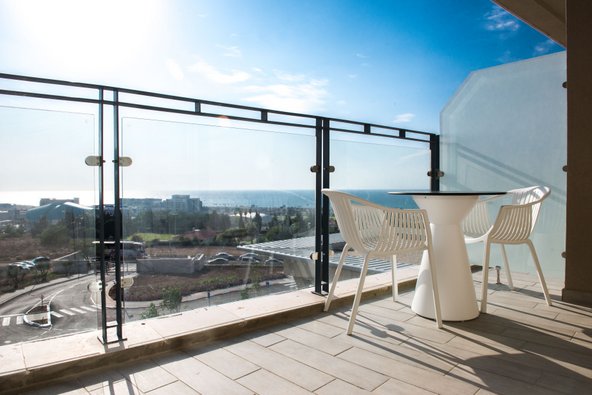 מרפסת עם נוף לים באכסניית אנ"א חיפה
