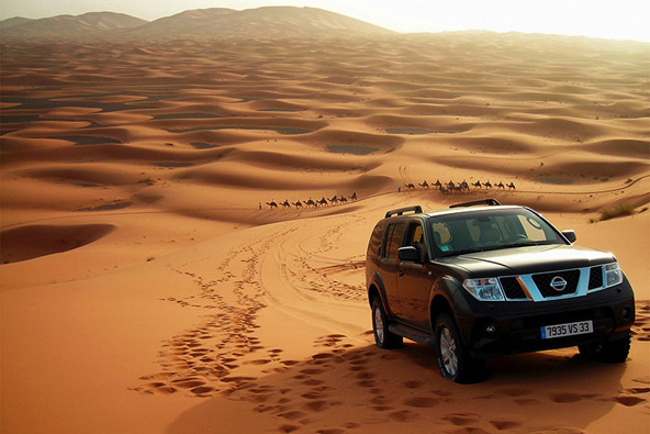 קניון הטודרה הרי האטלס הגבוה מציעים נופי טבע מרהיבים לצד כפרי ברברים מסורתיים. גולת הכותרת של האזור היא קניון נהר הטודרה, שמתחתר בינות למצוקים אדמדמים בגובה 300-200 מטר. לאורך המצוקים יש כפרים קטנים ומסורתיים, קסבות הבנויות בבוץ ובקש ואזורים חקלאיים. .jpg) נסיעת שטח מלהיבה בין דיונות החול של הסהרה. מהחוויות שלא כדאי להחמיץ במרוקו