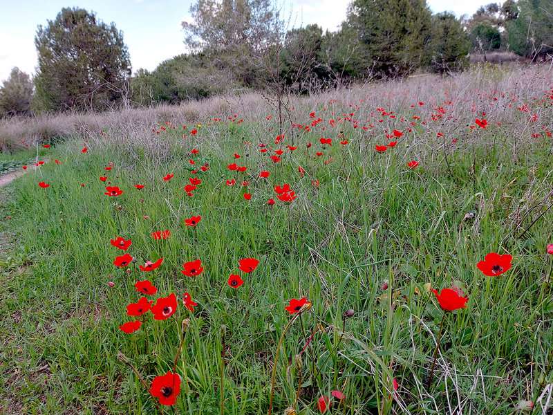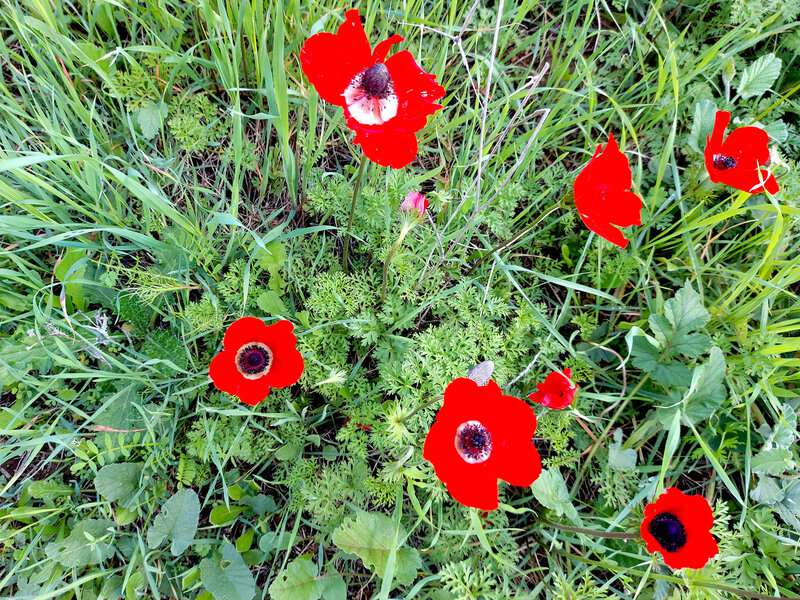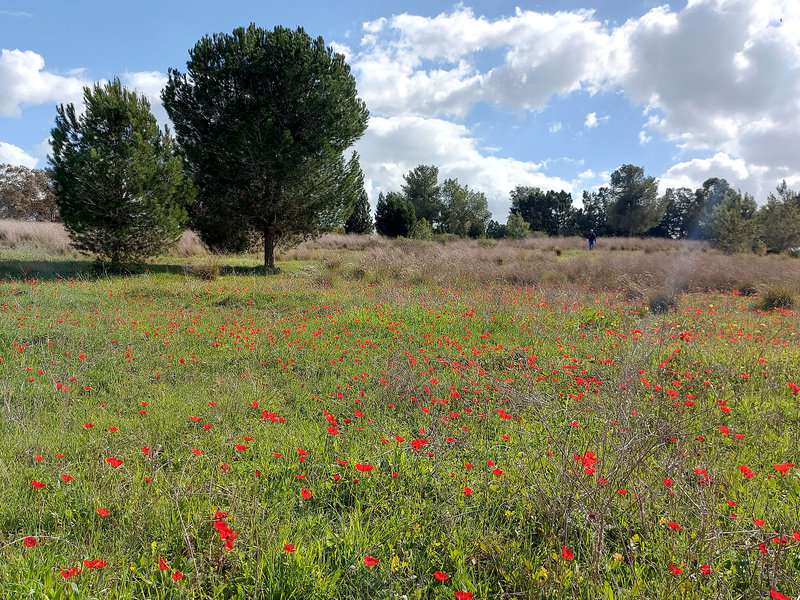 אנחנו עושים את דרכנו אל חוות רימון ביער להב, אבל עוד לפני שנגיע, כמה מילים על הטבע, שכדרכו לא מתחשב במצב האדם והוא מלבלב ופורח בשיא יופיו. בחורף, הנגב הצפוני מתכסה בשלל צבעים: אינספור גווני ירוק, מנוקדים בפריחת שקדיות, רקפות, אירוסים, סביונים, חרדלים ועוד, אבל מלכות הפריחה הבלתי מעורערות הן הכלניות, שכמו בכל חורף גם השנה מכסות במרבדים אדומים את הנגב הצפוני והמערבי. וכך גם השנה, למרות המלחמה.