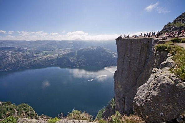 מהקרחון ממשיכים בדרך המושלגת אל עבר צוק הדרשן (Preikestolen), אחת מנקודות התצפית היפות ביותר בנורבגיה (והתחרות אינה קלה כלל), לשון סלע התלויה מעל פיורד תכול. טיול רגלי של כשעה וחצי, במסלול לא קשה במיוחד, יביא אתכם אל קצה "הלשון", וגם אם מזמן עברתם את שנות העשרים שלכם (פלוס עוד כמה וכמה עשורים), אל תוותרו על המסלול הזה. המראה המצפה מקצה הצוק אינו ניתן לתיאור במילים, צריך להיות שם ולראות אותו במו עיניכם. אנחנו מבטיחים שלא תתאכזבו. בתמונה הפותחת: צוק הדרשן, אחת מנקודות התצפית היפות בנורבגיה |